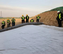 膨潤土防水毯又叫膨潤土墊每平方克重在3000克--6000克之間,屬于重貨因此在鋪設時現(xiàn)場人員在10人左右,材料鋪設后所有人員負責調整相鄰兩卷防水毯搭接30cm-50cm,調整完成后安排一人在搭接重合面撒搭接粉,相鄰兩卷完成后在進行下一卷的鋪設,該兩卷完成后如需回填在鋪設第三卷過程中前面兩卷就可以回填了,形成流水線作業(yè)模…